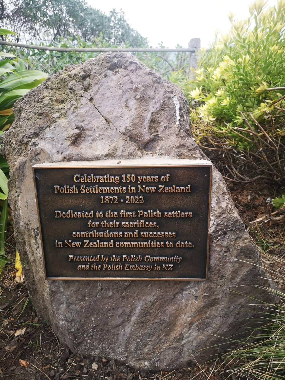 Commemorative plaque dedicated to First Polish Settlers that arrived in Lyttelton on board of 'Friedeburg' in 1872.