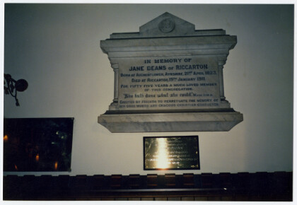 Details of memorials to Jane Deans, John Deans and Catherine ...