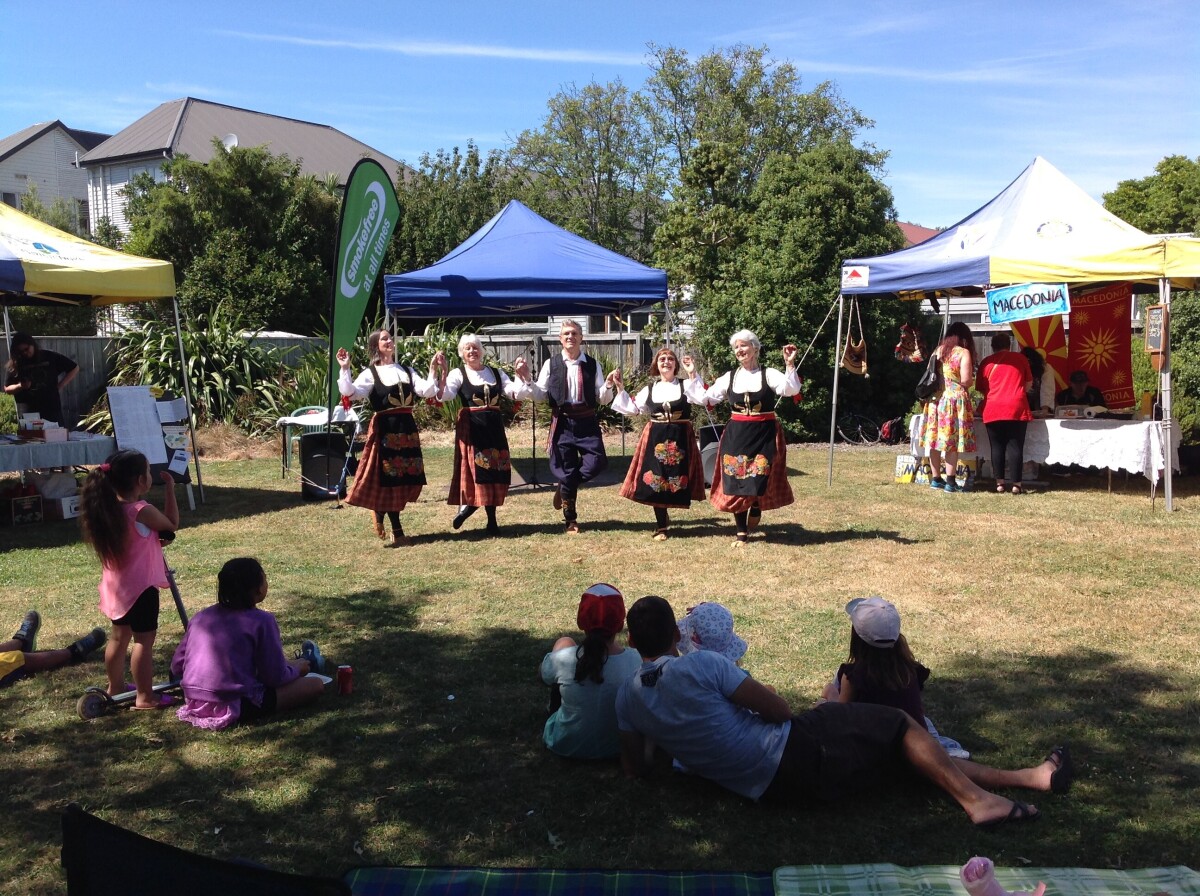 Linwood Community Arts Centre Multicultural Festival, 2017. Some Farandol Folk Dancers entertaining the crowd. Photo taken by Graeme Absalom.