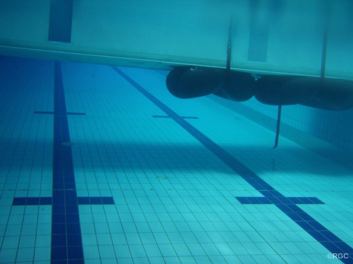 My son took this photo when the bulkhead was being installed in the 50 metre pool at the QEII Leisure Centre. This shot was taken from under water.