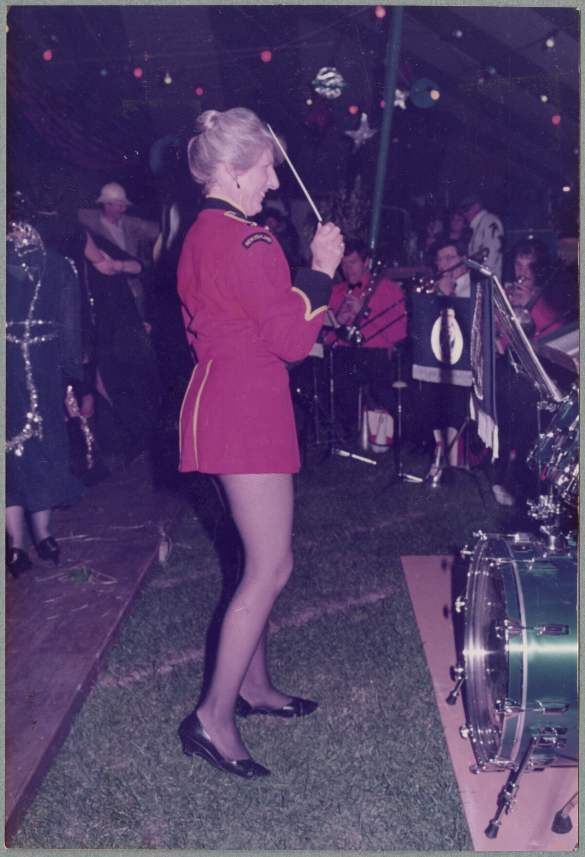 Wendy Burnett conducting the band/orchestra for the fundraiser for Sumner School Pool.