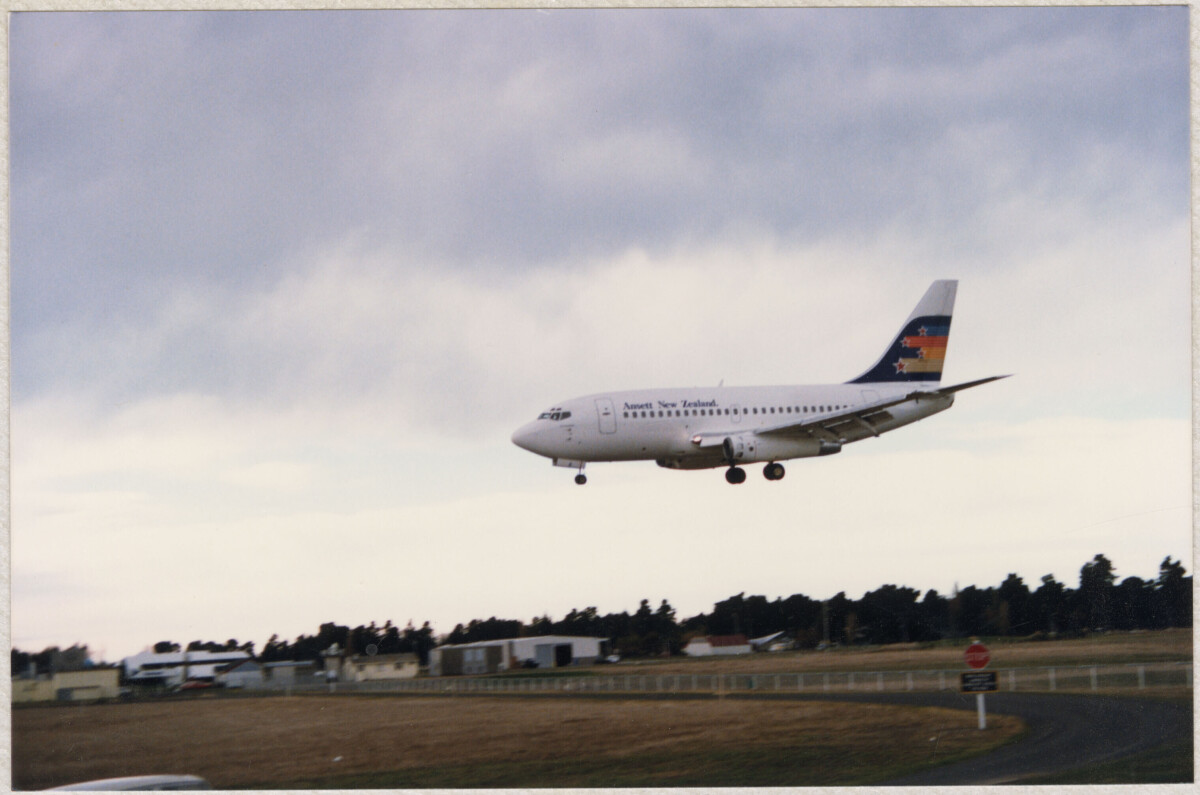 Ansett New Zealand aeroplane landing in Christchurch Airport.