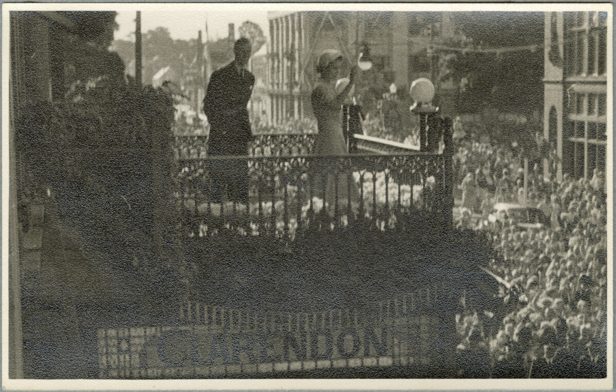 Outside the Clarendon Hotel at the time of the Royal Visit