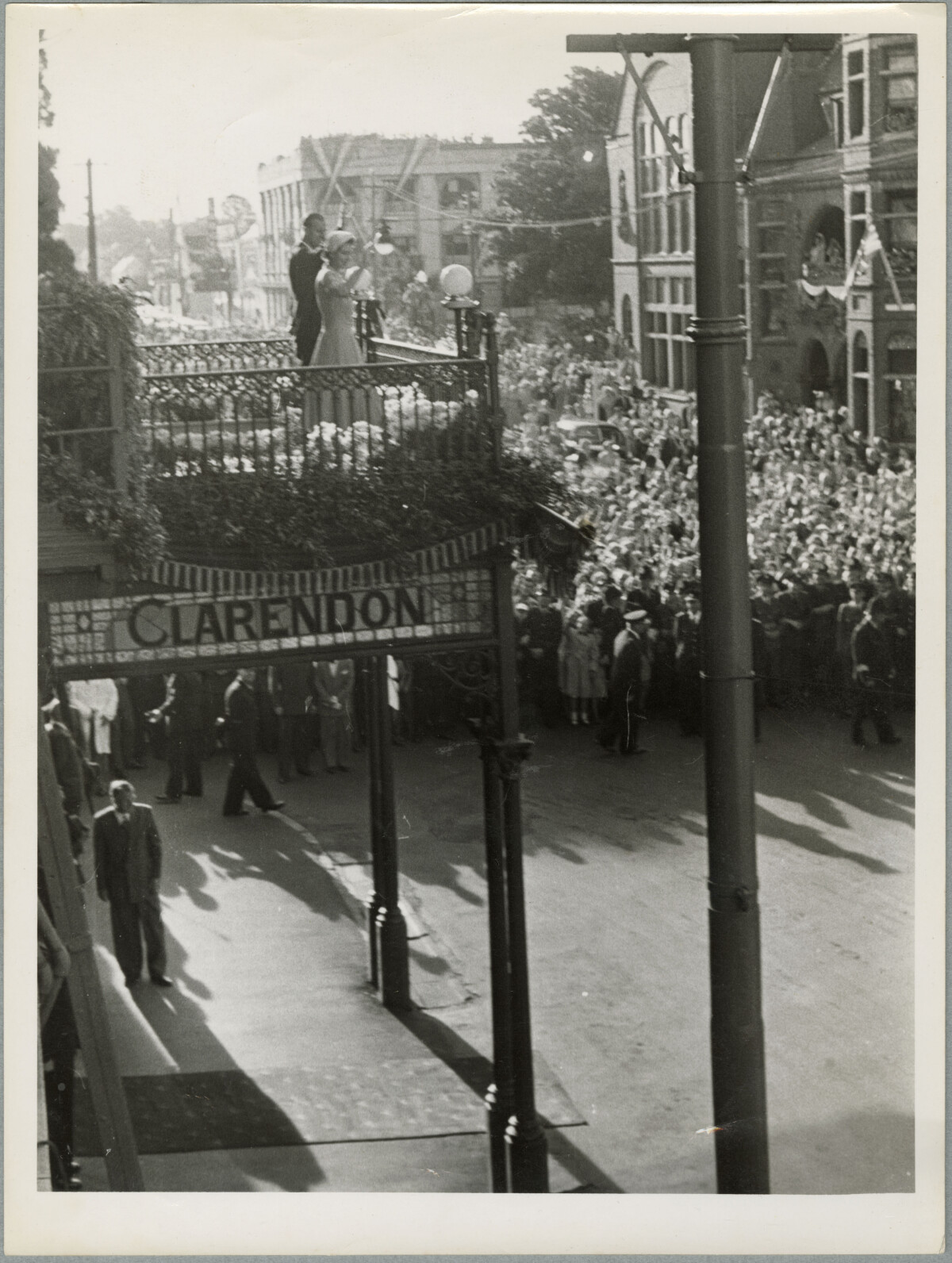 Outside the Clarendon Hotel at the time of the Royal Visit