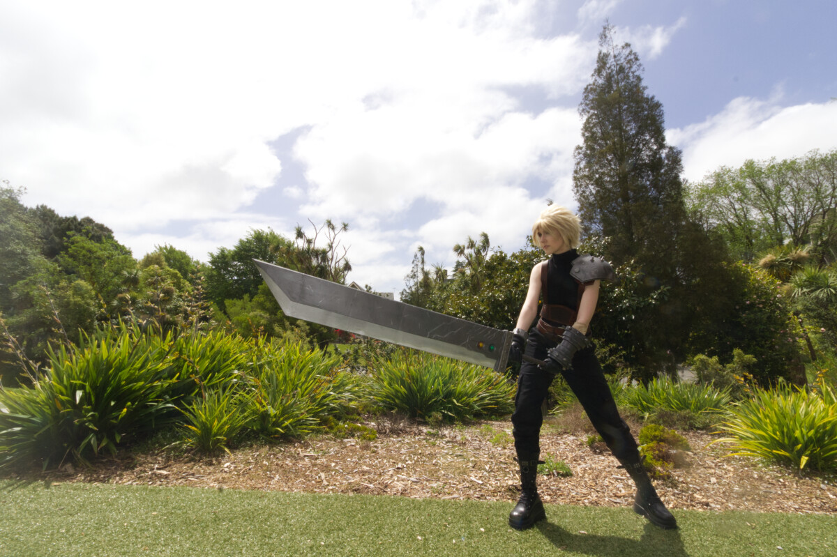 Cloud Strife cosplay with Buster Sword at Kōwhai Fan Fest
