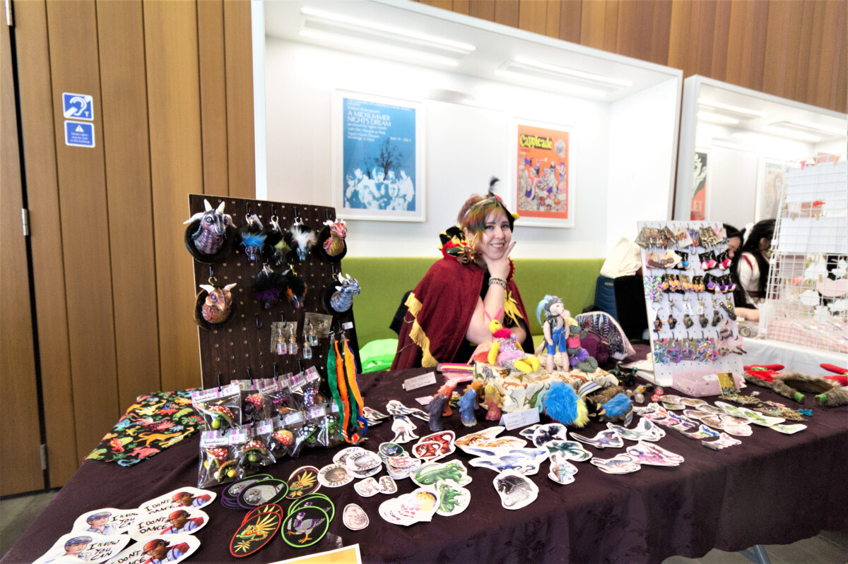 Pigeon - eclectic mix of multimedia art. Keychain, stickers and more. Stall at Kōwhai Fan Fest 2022. IG: randompastacat