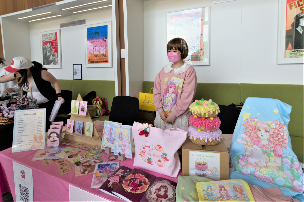 J Fashion, Illustration and Graphic Design. IG: @ringo.sparkle.design, @ringo.sparkle. Stall at Kōwhai Fan Fest 2022.