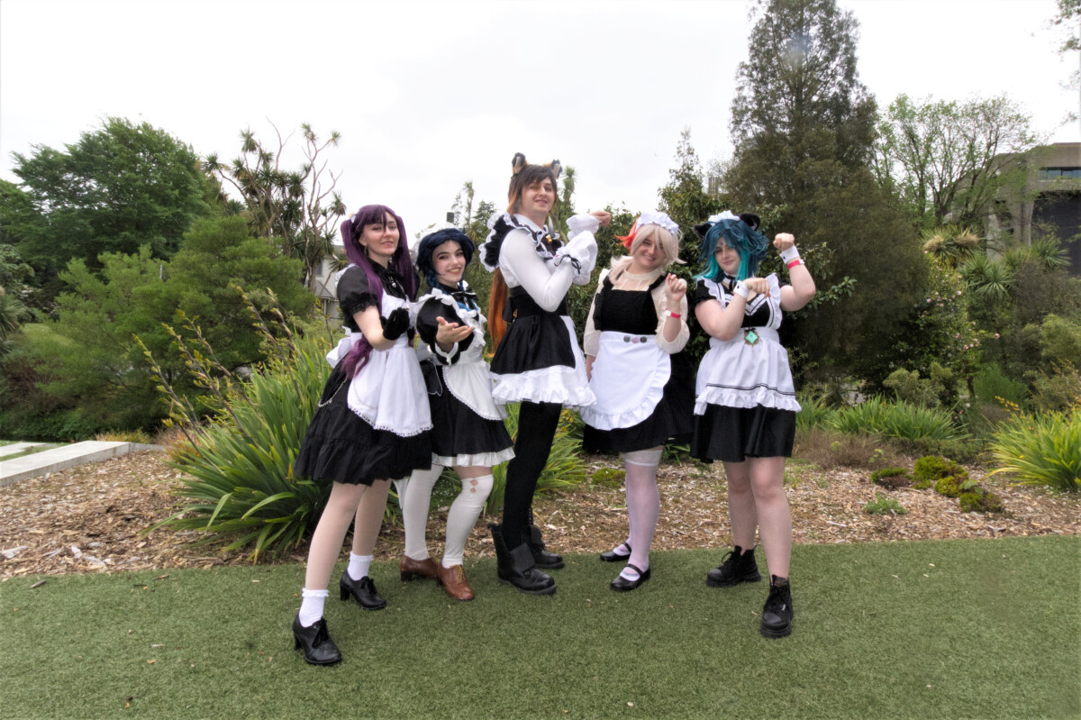 Cosplays by: @scaracos_ (cat xiao), @nevitae_ (Maid Kazuha), @luxiel_cosplay (Maid Zhongli), @mistralcosplay (Maid Mona), @metracos (Maid Venti) at Kōwhai Fan Fest 2022.