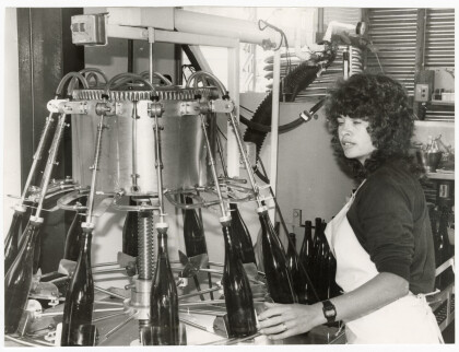 Ali White operates the filling machine at Barkers Winery, ...