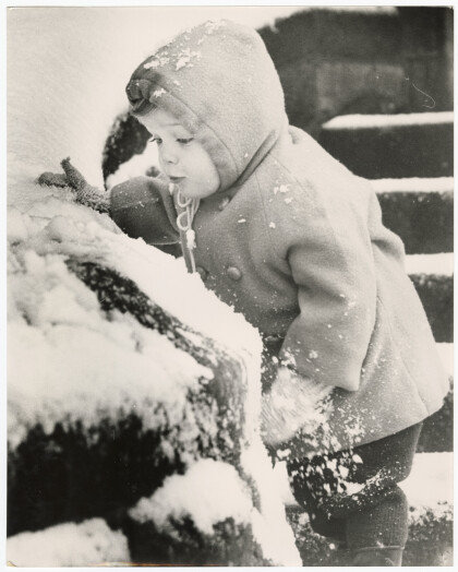Benjamin Denning, 3, playing in the snow at Dyers Pass Road.