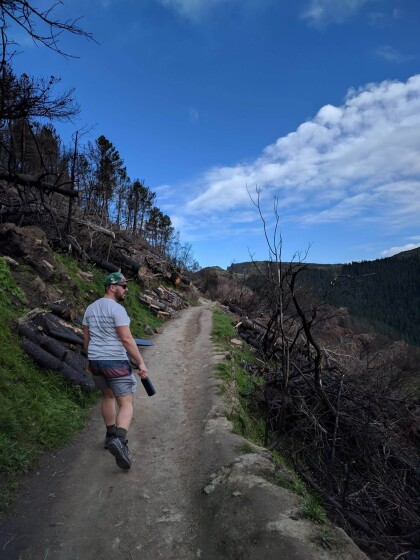 Walking along the Harry Ell Track with a friend months after the ...
