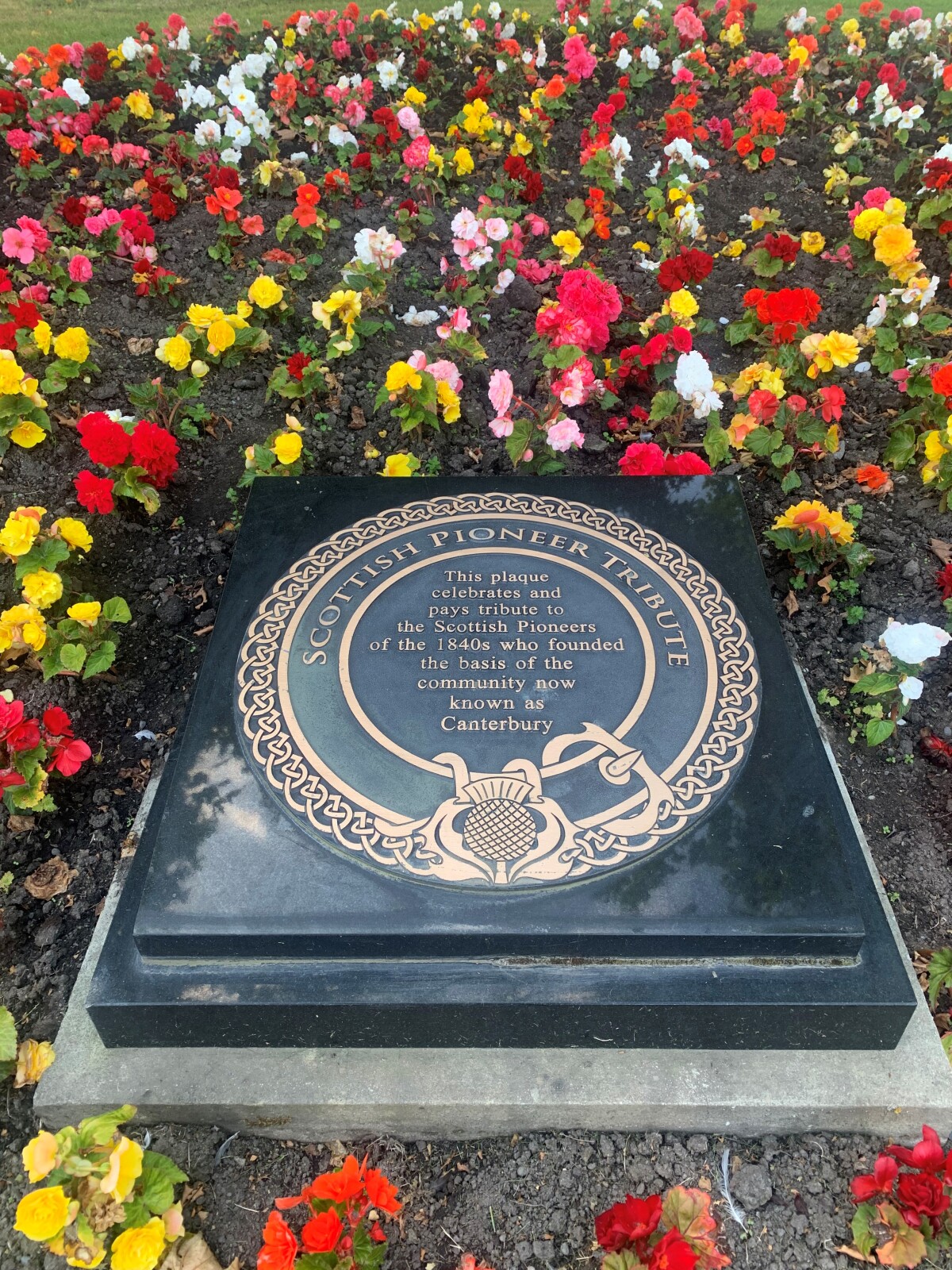 Scottish Pioneer Tribute plaque on the corner of Colombo Street and Kilmore Street.