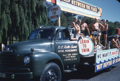 Float - water safety. On back of truck belonging to R.C Rollo ...