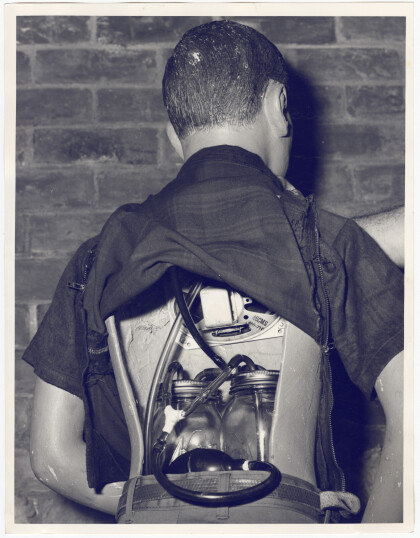 Bottles in the back of the Smoking Sam mannequin fill with ...