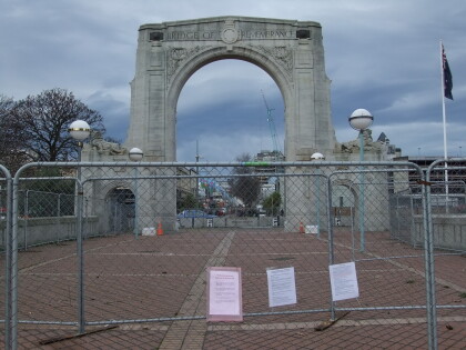 Notice on the cordon fence at the Bridge of Remembrance
