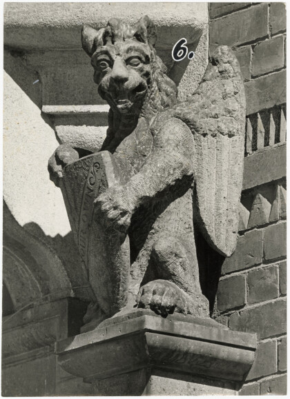 Statue on the side of the door at the chamber of commerce, ...