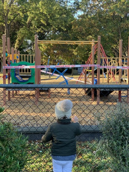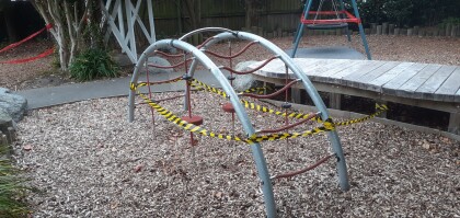 Playground at Rugby St reserve, taped off as part of covid19 ...