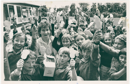 Lynette Pinn with St Theresa's School pupils and Big Feet ice ...