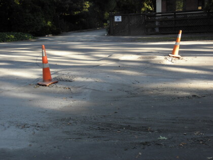 Earthquake damage to concrete block pavers and liquefaction.