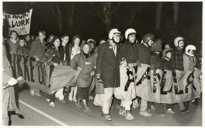 A group of protesters on Deans Avenue heading towards Chateau ...