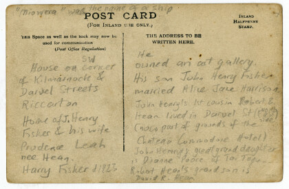Postcard - Miowera, Kilmarnock & Darvel Streets, reverse