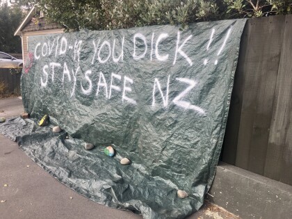 Sign on a fence outside a house in Richmond. The first line ...
