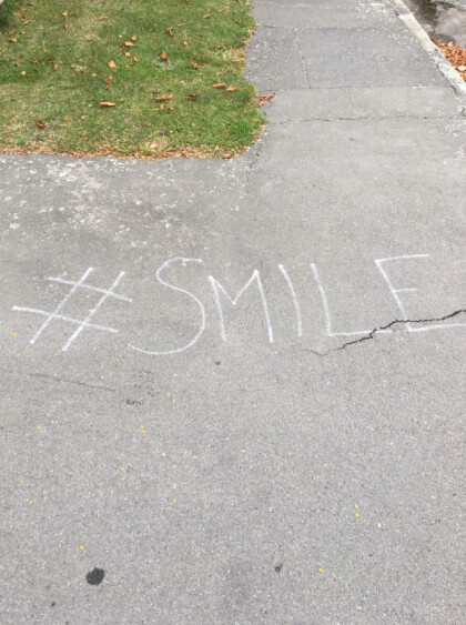 An uplifting chalk drawing on the sidewalk during lockdown.