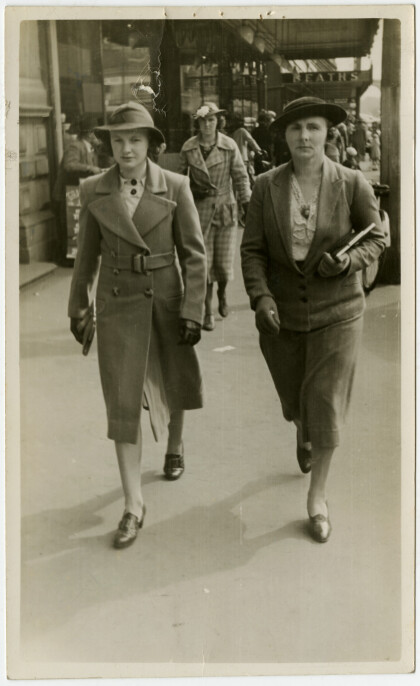 Mrs G.B. Steel and her daughter shopping in Cashel Street