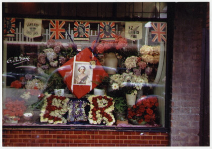 Floral display in a shop window for the Royal Visit