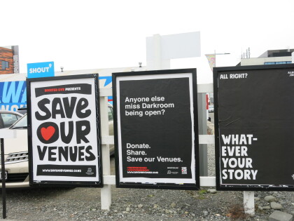 Graffiti advertising The Axemen band in the 1980s.