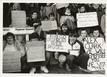Protest about bus passes for those with disabilities