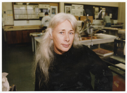 Portrait of Robin White, artist, in the art studios of ...