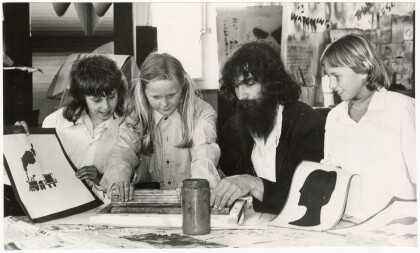 Michael Thomas teaches screen printing to, from left, Andrea ...