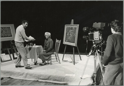S.R. Gerrand demonstrating the interior of the mobile television ...