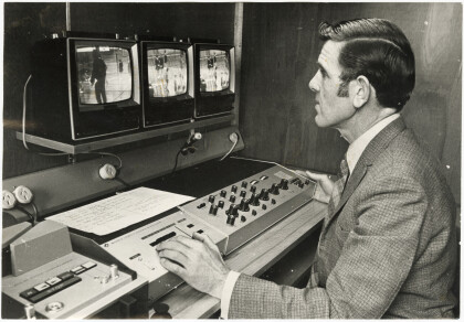 J. Dykes at the control panel of a closed circuit television ...