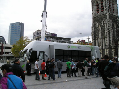 Xbox 360 promotional bus display at Cathedral Square. Bus is a ...