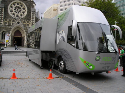 Xbox 360 promotional bus display at Cathedral Square