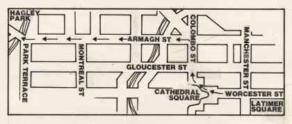 Route of Christchurch's first Peace Festival parade