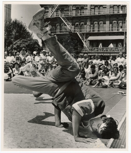 "Rhett James of "Coloured Crew Lockers" break dancers."