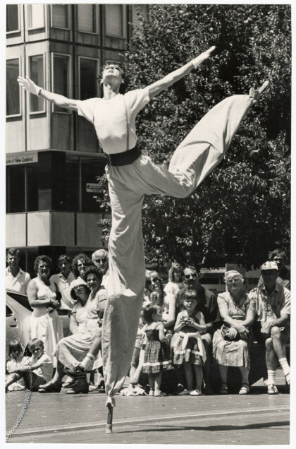 Stiltwalker, Martin Ewen, performs in Cathedral Square for the ...