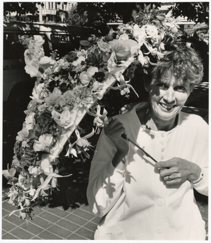 Trish Minchington with floral parasol