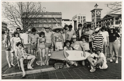 University students dressed in beach clothing in June in ...