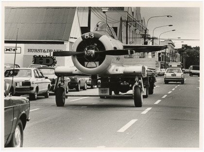 RNZAF Harvard towed to Cathedral Square