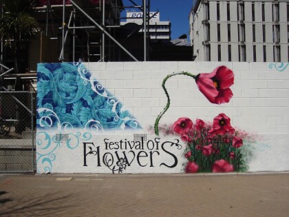 Sign for the 2008 Festival of Flowers in Cathedral Square.