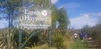 An extended whanau group walking through Otukaikino Reserve on ...