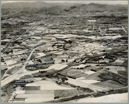 Aerial view showing the planned route of the northern motorway ...