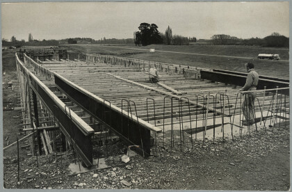 Ernice Custance operating a trusser at Belfast trussing works.