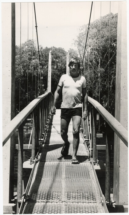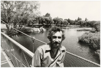 Ranger Malcolm Campbell on the suspension bridge at the Groynes.