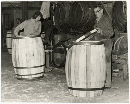 Barrels at Canterbury Frozen Meat Company cooperage, Belfast.