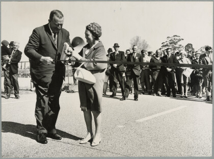 Minister of Works P.B Allen and Mrs H.E.L. Pickering, wife of ...